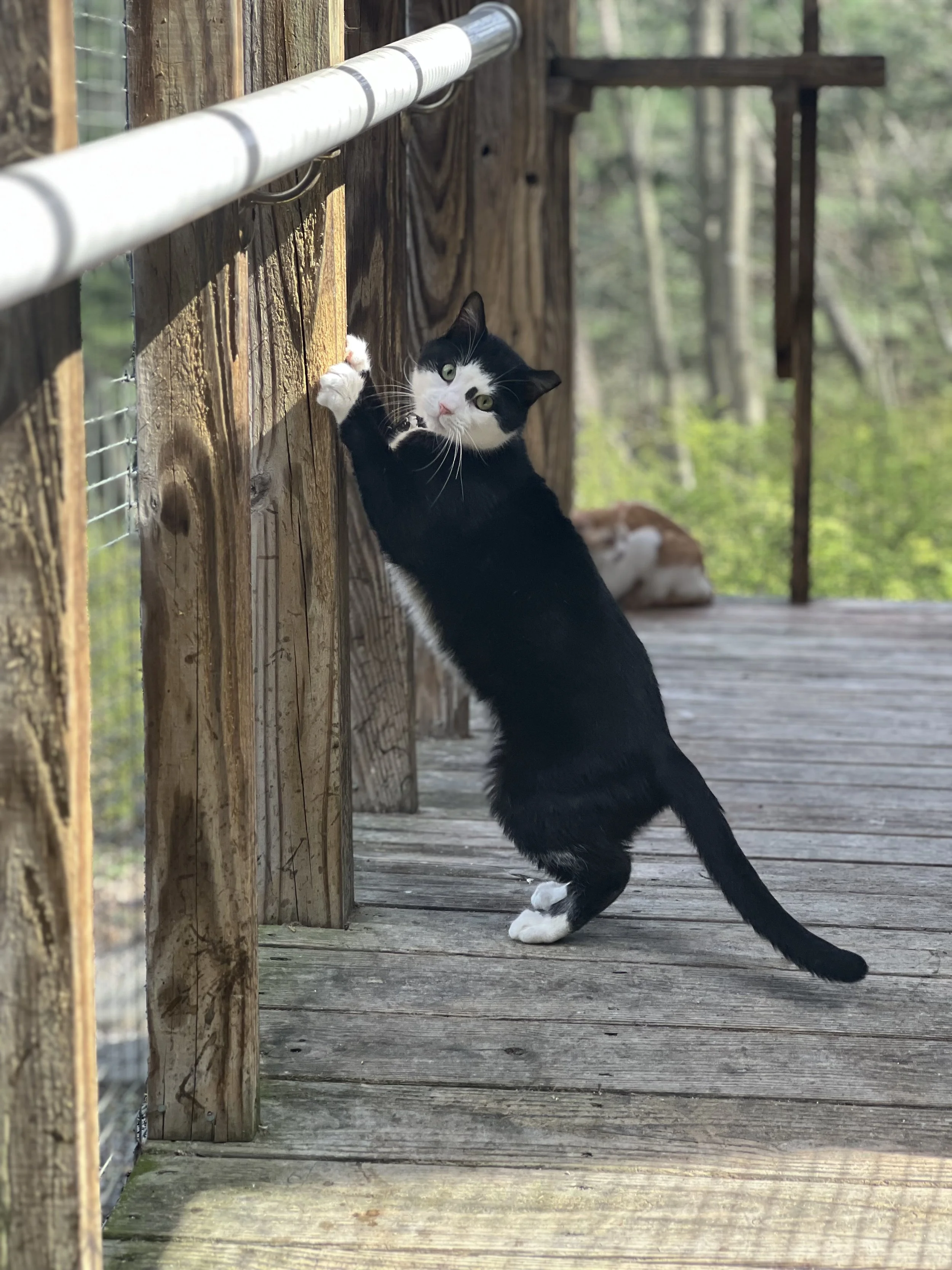Our sanctuary is thoughtfully divided into two separate, cage-free living areas to ensure every cat receives the safest and most appropriate care.