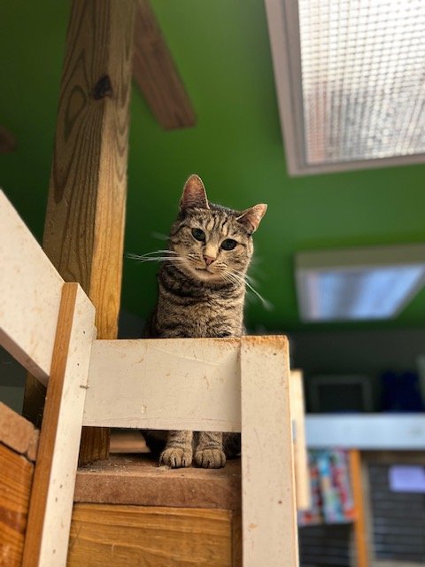 The Middle Room may also be home to a small number of cats who benefit from a more contained environment due to mobility challenges or other physical limitations, allowing them to rest comfortably and move safely within a space tailored to their needs.
